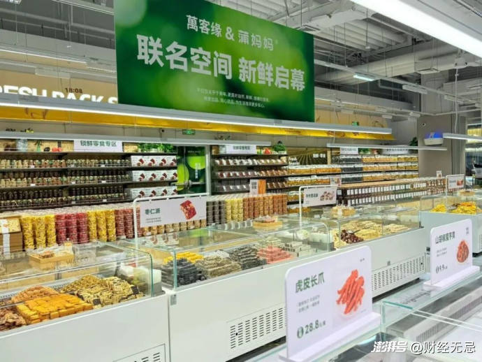 烤箱、蒸箱、操作台成为门店的热切区域,现烤板栗、现制烘焙、鲜卤、现榨果汁,与坚果、果干、肉脯一说念组成了主要的商品结构。
