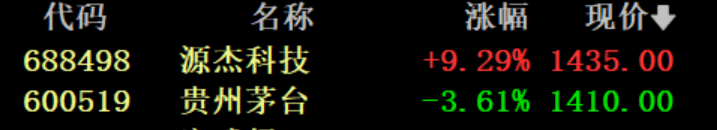 今天早盘,源杰科技盘中股价卓绝贵州茅台,成为A股第一高价股。